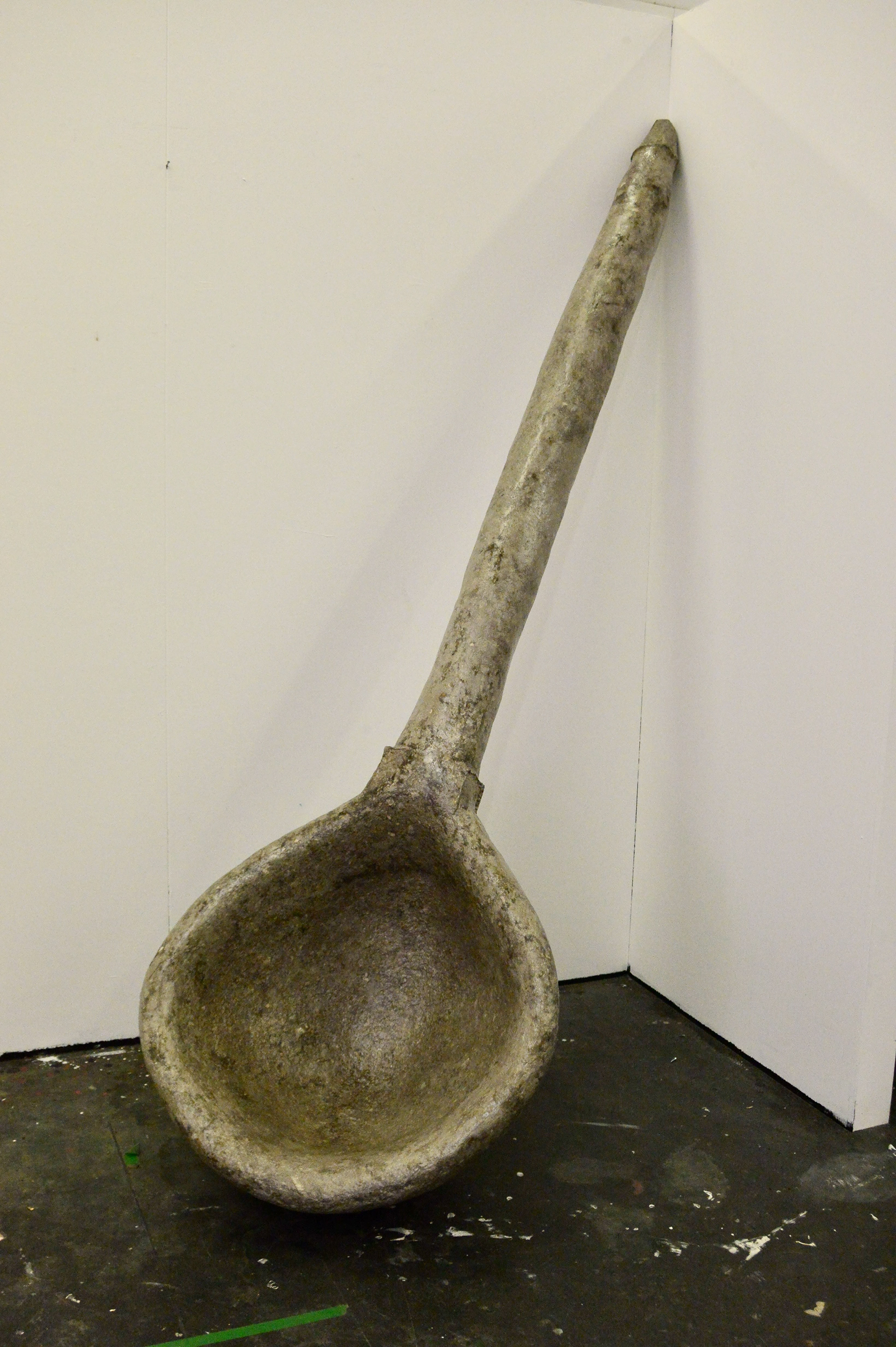 Wood, cardboard, wire, foam, newspaper pulp, wallpaper paste, PVA and varnish;